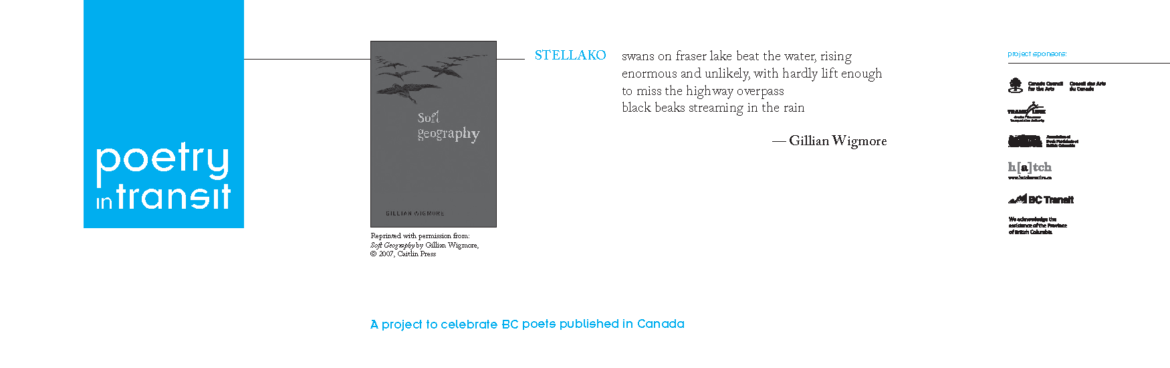 This week, a quiet moment of beauty brought to you poem by Gillian Wigmore‘s poem “Stellako,” featured in Poetry in Transit 2008/09