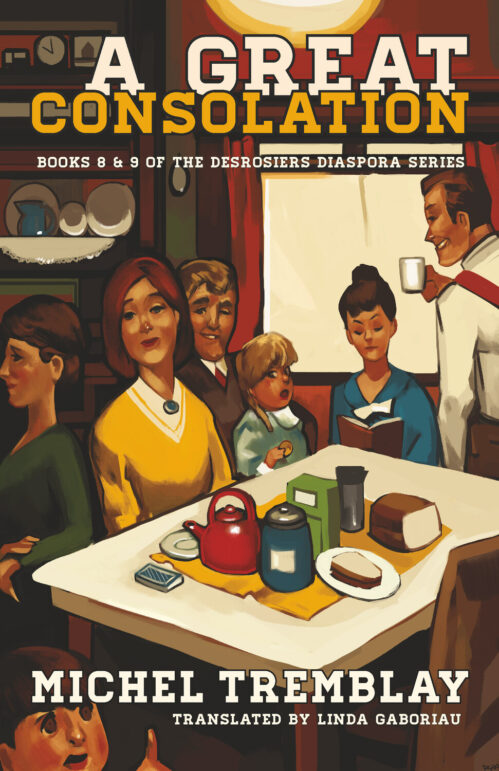 A Great Consolation is the most recent addition to the Desrosiers Diaspora series, a 1,400-page family saga spanning the North American continent in the early years of the twentieth century. Set in Montréal in 1935 through to 1941, this book follows the Desrosiers family as they navigate poverty, secrets, scandal, and of course, each other. Outside their unbearably crowded household, war rages and rationing rules over daily life, until a year later, in May 1942, the series’ most beloved character Nana opens the fabulous Chronicles of the Plateau-Mont-Royal.