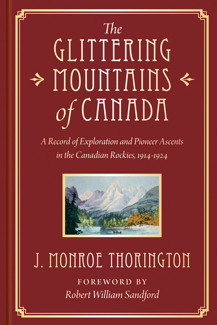 The Glittering Mountains of Canada: A Record of Exploration and Pioneer Ascents in the Canadian Rockies, 1914-1924 by J. Monroe Thorington, foreword by Robert William Sandford (Rocky Mountain Press)