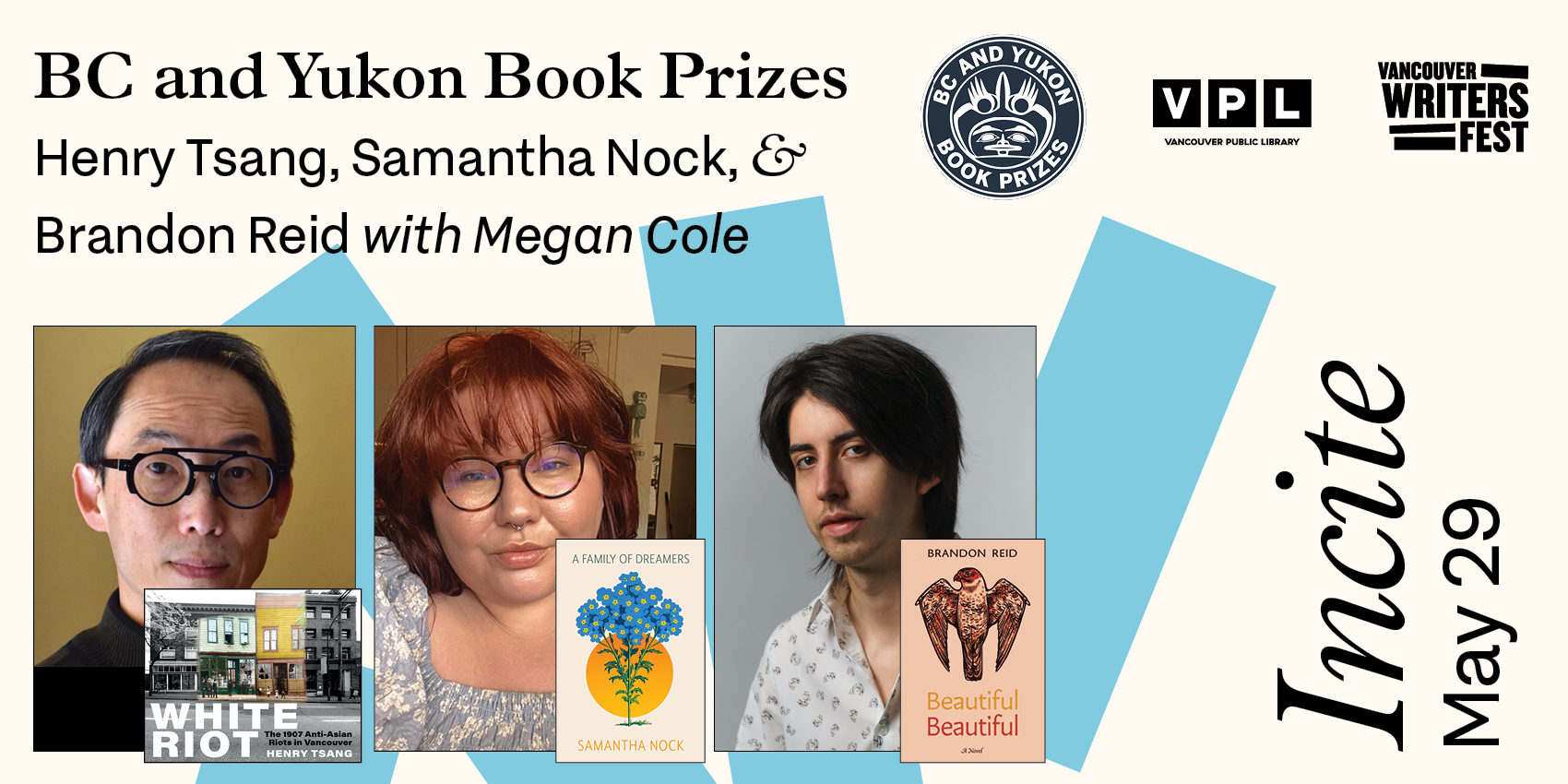 Join the Vancouver Writers Fest, VPL, and BC and Yukon Book Prizes for an evening of celebrating the finalists of the BC and Yukon Book Prizes. Hear from three lauded local authors, each nominated in a different category of this year’s awards:
