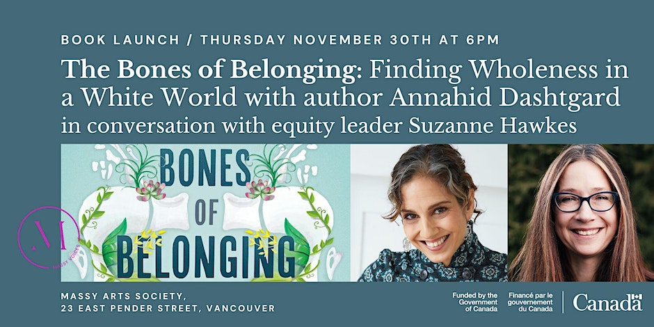 On Thursday, November 30th at 6pm, join Massy Arts, Massy Books and Dundurn Press in celebrating The Bones of Belonging: Finding Wholeness in a White World with author Annahid Dashtgard, in conversation with equity leader Suzanne Hawkes.